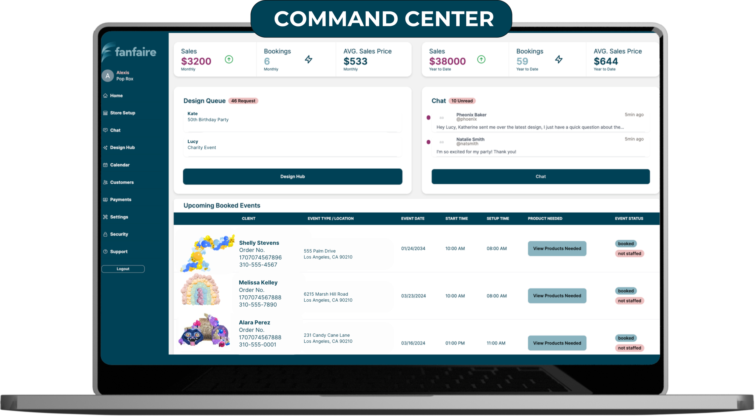 Fanfaire is built for balloon designers, event stylists, and decorpreneurs who want a faster, more modern way to sell custom décor, create mockups, and streamline bookings.