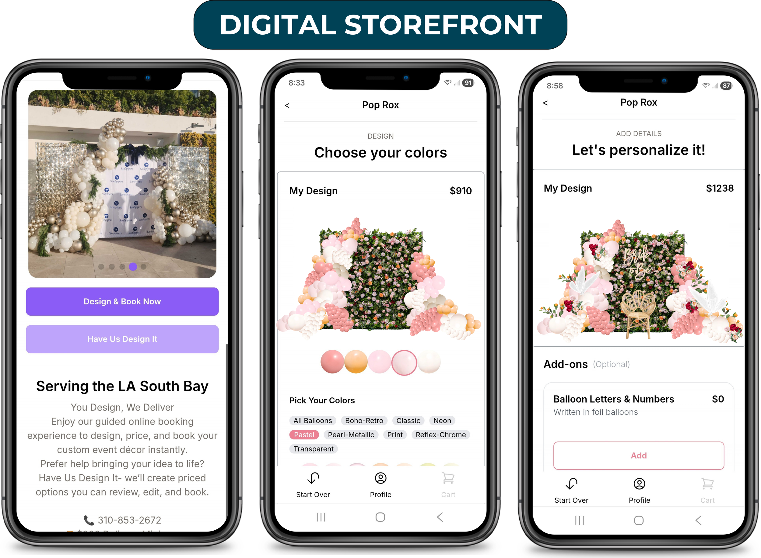 Fanfaire is not a CRM or a static website. It’s a guided web app that gives clients an interactive way to design décor, customize options, see live pricing, and book instantly—far beyond a traditional inquiry form. Your Fanfaire Digital Storefront can serve as a full website replacement or be linked from your existing site as a Book Now button to guide clients into the booking experience.
